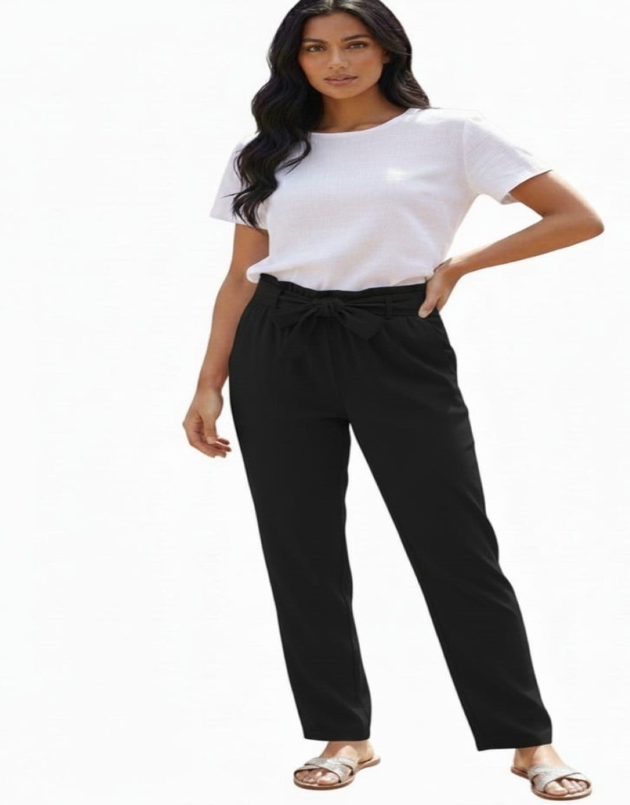 A timeless essential, these classic black pants are perfect for every occasion. Crafted from best quality Korean lycra fabric, they offer a soft feel, durability, and a flexible fit. The sleek belt detail adds a stylish touch while ensuring a comfortable fit around the waist. Ideal for both formal and casual looks, these black plazo pants provide a clean, elegant silhouette and are a versatile addition to any wardrobe.
