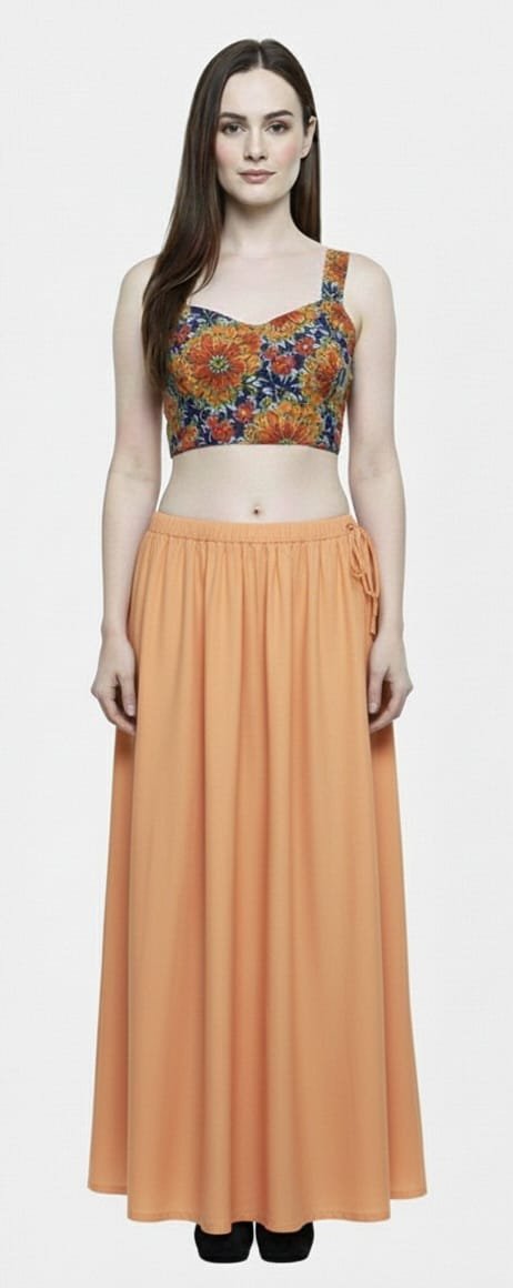 This skin beige petticoat is crafted from pure cotton fabric that is soft, breathable, and ideal for long wear. Its neutral tone makes it perfect to wear under light-colored outfits without showing through.